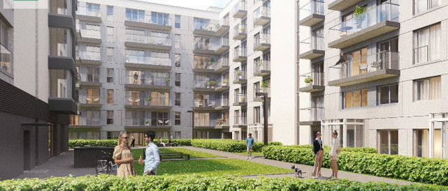 - Wewnątrz osiedla znajdą się stojaki na rowery, stacja napraw, liczne strefy relaksu dla dorosłych, a także plac zabaw dla dzieci.
